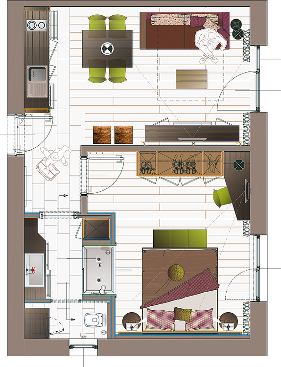 Dieses Zimmer liegt ebenerdig, südseitig zum Garten & Schwimmbad und hat einen getrennten Wohn- (mit Schlafsofa für Ihre Kinder) und Schlafraum. Beide mit Eichenholzparkett. Die Möbel in Zirbe und Nuss. Ein großzügiges Bad mit räumlich getrenntem WC, großer Dusche, Kosmetikspiegel. Es ist zusätzlich mit einer kleinen Kochecke und Kühlschrank ausgestattet. Bei Küchennutzung berechnen wir eine Endreinigung von 30 €. Es ist ein ideales Familienzimmer oder passend für Platz-Liebhaber.